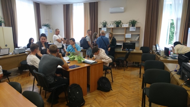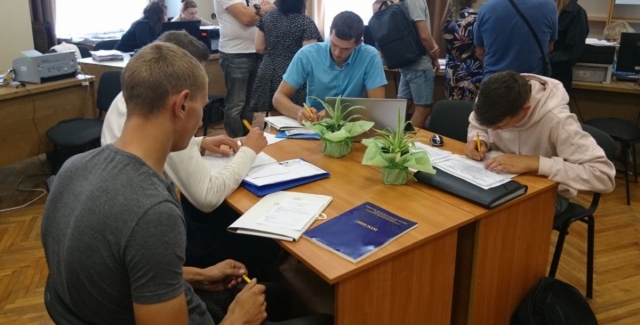 Абітурієнти на місці оформили свої електронні кабінети, подали електронні заяви і комплекти документів, заповнили договори про навчання. В ході оформлення хлопці допомагали один одному, а після закінчення ще й допомогли комісії скріпленні бланків договорів, за що їм окремо дякували.
