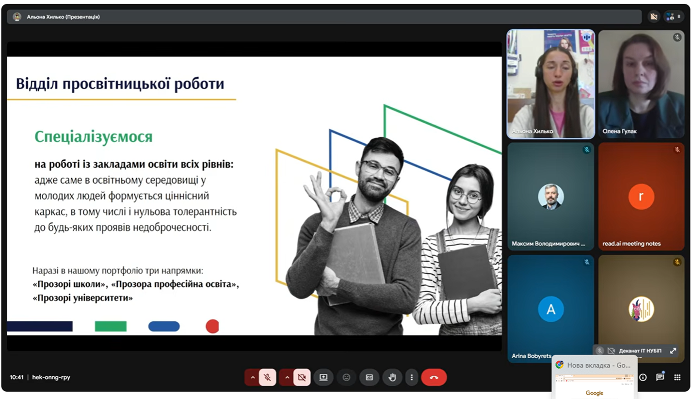11 березня 2026 року відбулась онлайн зустріч на тему «Антикорупція у вишах: розпізнай, реагуй, впливай» для студентів 1 курсу бакалавратури і 1 року навчання магістратури та аспірантури факультету конструювання та дизайну Національного університету біоресурсів і природокористування України.