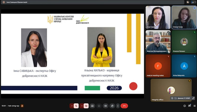 Офіс доброчесності НАЗК – тематична лекція здобувачам вищої освіти