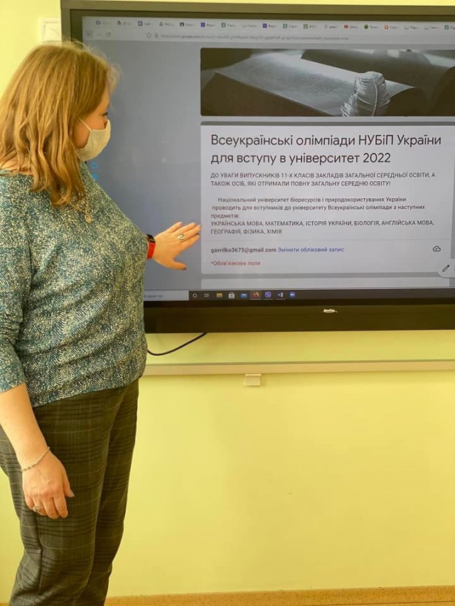 Учнів одинадцятих класів детально поінформували не тільки про спеціальності, за якими НУБіП України здійснює підготовку (а їх аж 45!), а й щодо підтримки абітурієнтів університетом, особливістю якої є участь у Олімпіаді, що надає унікальну можливість отримати до 20 додаткових балів до оцінки сертифіката ЗНО з одного відповідного предмета при розрахунку конкурсного бала і може стати ключовим чинником при вступі на місця державного замовлення.