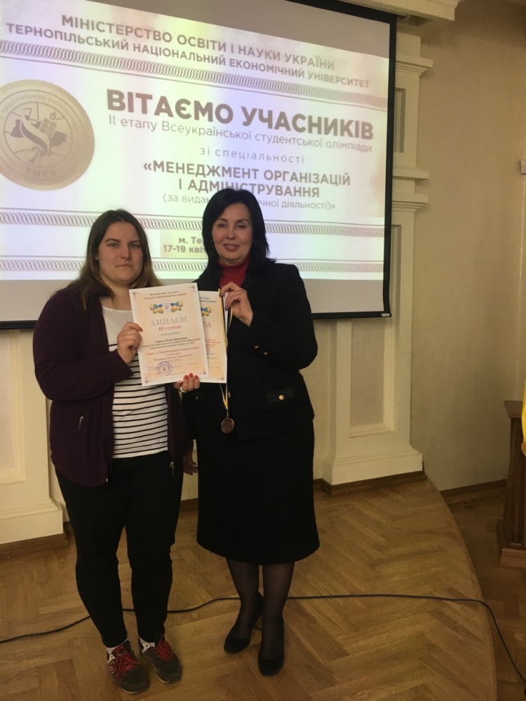 Студенти гідно представили наукову школу кафедри виробничого та інвестиційного менеджменту на всеукраїнських наукових перегонах. Впоралися із тестовими завданнями, натхненно доповіли про результати свого дослідження, переконливо відповідали на запитання, поставлені експертами-науковцями. Тож і результат потішили – Оксана посіла третє призове місце із вісімдесяти учасників, а Діана нагороджена грамотою за креативність у вирішенні практичних завдань.