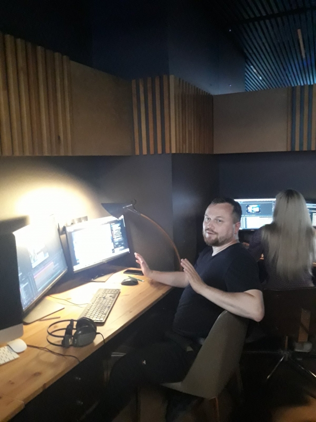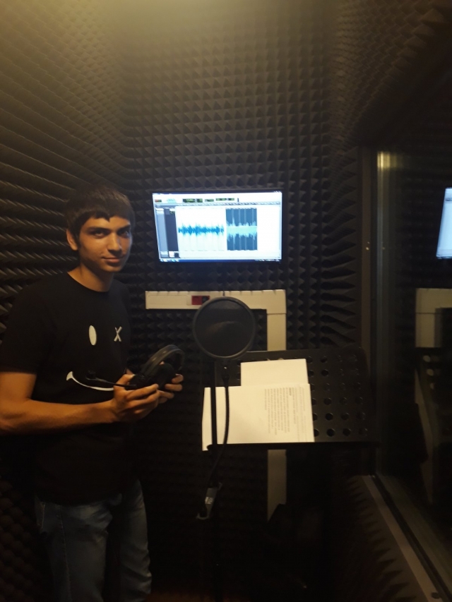 Віталіна Канцеляренко та Байрам Оруджев освоюють тон-студію, де начитують закадрові тексти