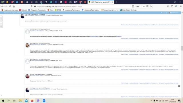 Наблизився до завершення черговий тиждень карантину, але, незважаючи на нього, ми продовжуємо проводити дистанційні заняття зі студентами. Так, 26 та 27 березня доцентка Світлана Хом′яченко для проведення практичного заняття з дисципліни «Історія держави і права України» в групі Прав-1902 використала декілька дистанційних форм – Elearn та Viber.