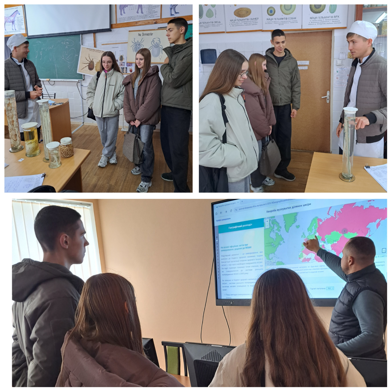 Практичний блок заходу включав відвідування музею паразитології, де учні ознайомилися з морфологією зоопаразитів, їх біологічними особливостями та патогенним впливом на організм тварин і людини. Демонстраційні матеріали та коментарі викладачів дозволили учасникам усвідомити значення паразитологічної діагностики у ветеринарній практиці. Також учні познайомилися з роботою Центру GeoVet analytics.