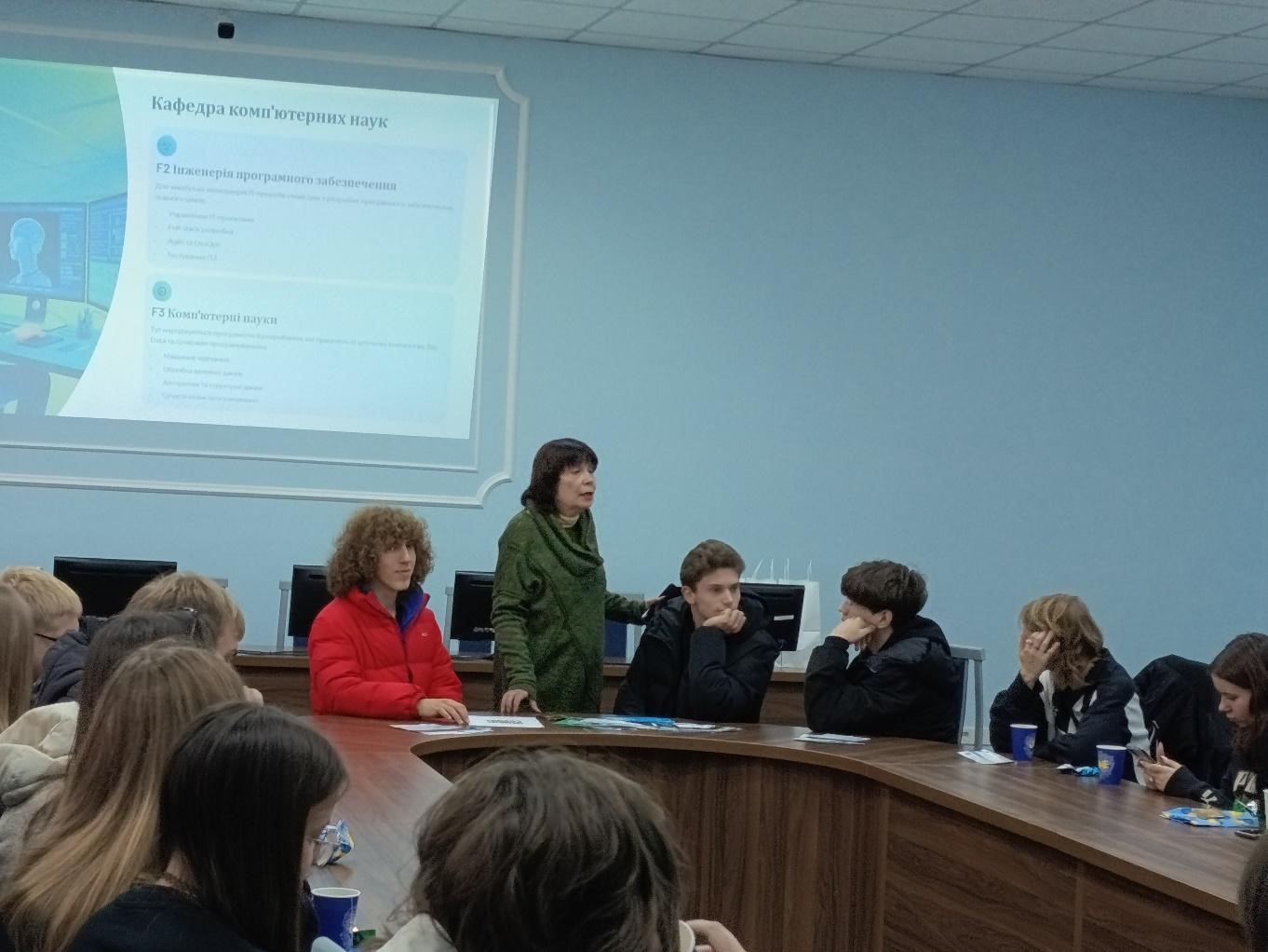 Презентацію факультету провели заступники декана Наталія Клименко, Семен Волошин, Володимир Матієвський, а також завідувачі кафедр — Дмитро Касаткін, Белла Голуб та Михайло Швиденко, координатор з профорієнтаційної роботи на факультеті Інна Костенко.