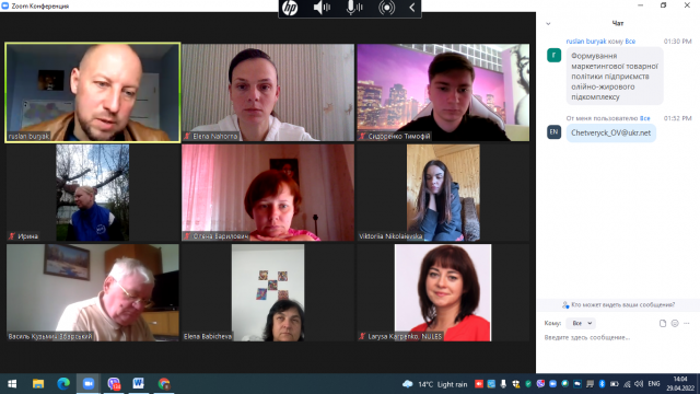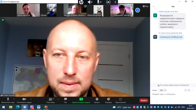 29 квітня під головуванням завідувача Буряка Руслана Івановича відбулося засідання кафедри маркетингу та міжнародної торгівлі. Відповідно до попередньо оголошеного порядку денного розглядалися питання життєдіяльності кафедри в період дії військового стану.