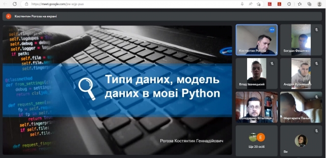 2 березня 2023 року доцент кафедри інформаційних систем і технологій Костянтин Рогоза провів відкриту лекцію з дисципліни «Комп’ютерні технології та програмування» на тему «Типи даних в мові Python» для студентів першого курсу освітньої програми «Електроенергетика, електротехніка та електромеханіка».