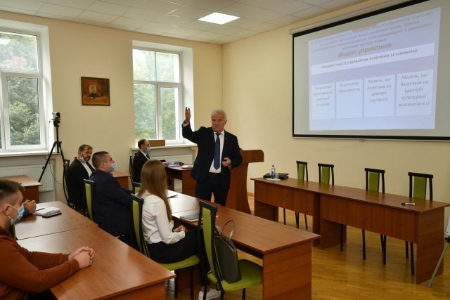 Від перших днів навчання, ректорат забезпечує наявність та організацію навчання в очному форматі. Цього тижня ректор Станіслав Ніколаєнко в очному форматі ознайомив аспірантів з організаційно-педагогічними основами управління та самоменеджменту в діяльності керівника закладу освіти, прийняттям управлінських рішень та управлінням закладами вищої освіти.