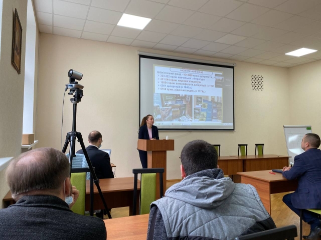 Директорка навчальної бібліотеки НУБіП України Тетяна Кіщак провела аспірантам екскурс з академічної доброчесності, розповіла про наявний бібліотечний фонд університету та можливі джерела збору та аналізу інформації для виконання досліджень та написання майбутньої дисертаційної роботи.