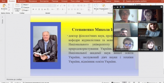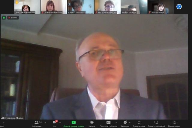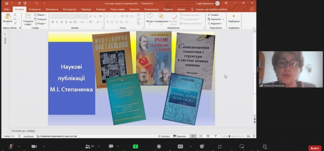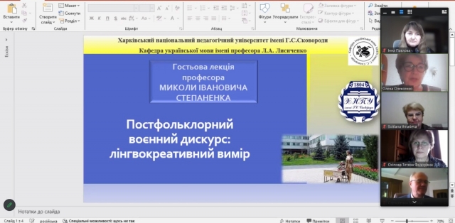 Шанований гість - відомий мовознавець професор Микола Іванович Степаненко – прочитав незвичайну лекцією, що задає новий вектор у гуманітарних науках, - вивчення постфольклорного дискурсу, сформованого лінгвокреативністю українців, які в умовах війни здатні гострити не лише зброю, а й народне СЛОВО. Професор постав перед слухачами як палкий мольфар, який зачаровує замовляннями, викликає сльози канонізованою колисковою, таврує ворога народними закляттями і вселяє віру в силу українського духу, який обов'язково подолає всяку нечисть, що гнобить сьогодні нашу землю. Лекція викликала хвилю емоцій, змусила замислитися про наш потужний український ген і спонукала до нових студій сучасного слова.