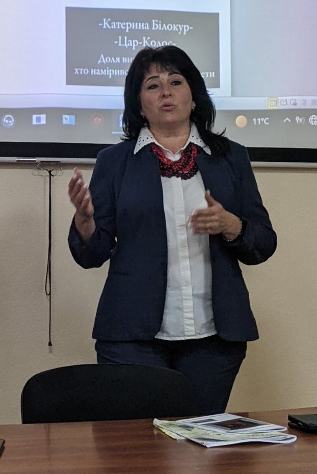 Увагу присутніх привернув творчий мінідоробок Юлії Захарової, яка писала про страшні події в Маріуполі. Війна болить нам усім, тому про неї мовлено чимало.