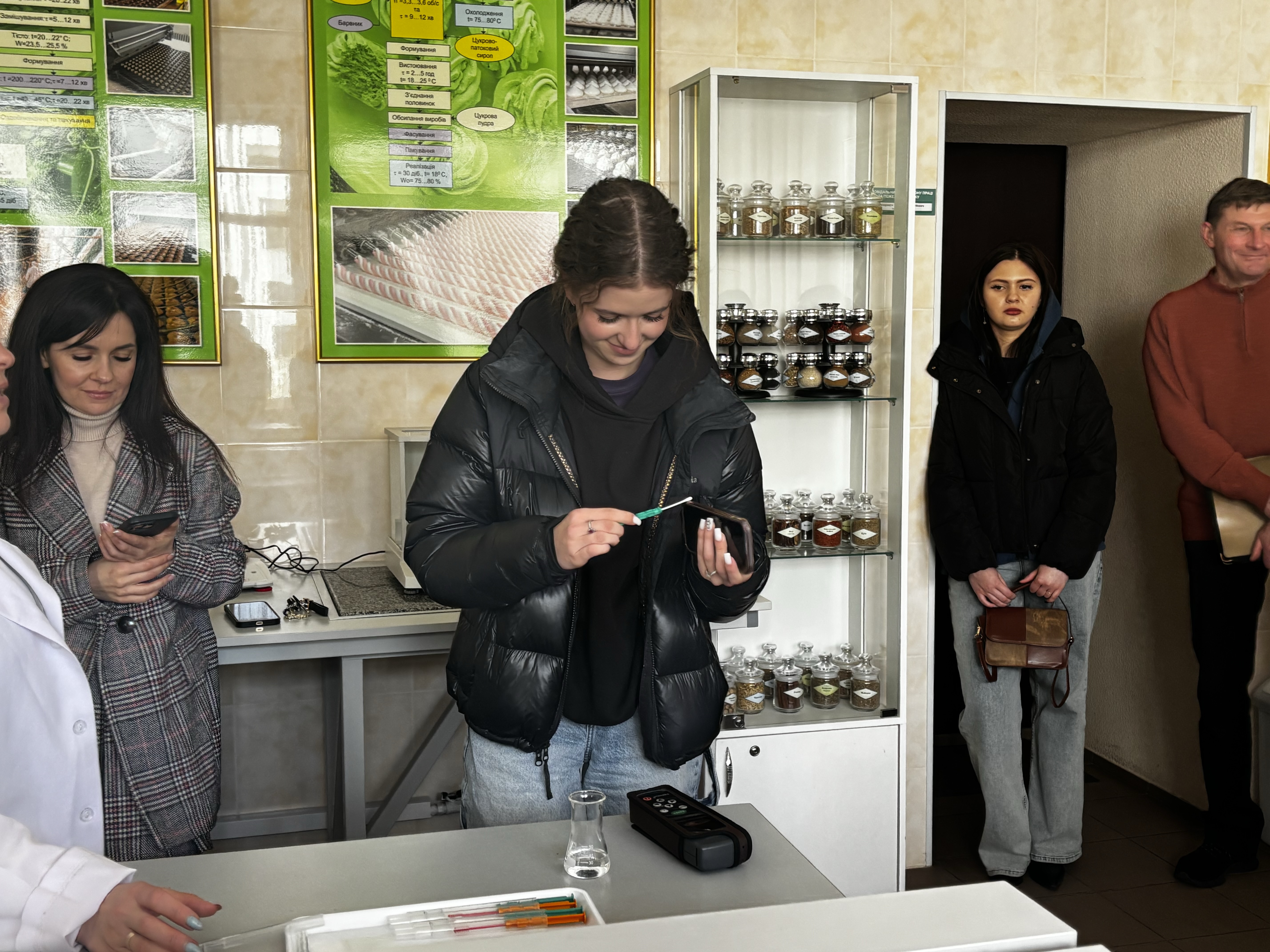В навчальних лабораторіях харчових технологій доценти Оксана ПИЛИПЧУК та Ірина ХАРСІКА продемонстрували сучасні підходи до аналізу якості харчових продуктів. Школярі мали змогу наочно побачити роботу аналітичного обладнання, дослідити структуру різних харчових об’єктів і навіть долучитися до проведення експериментів, що викликало щире зацікавлення та жваве обговорення.