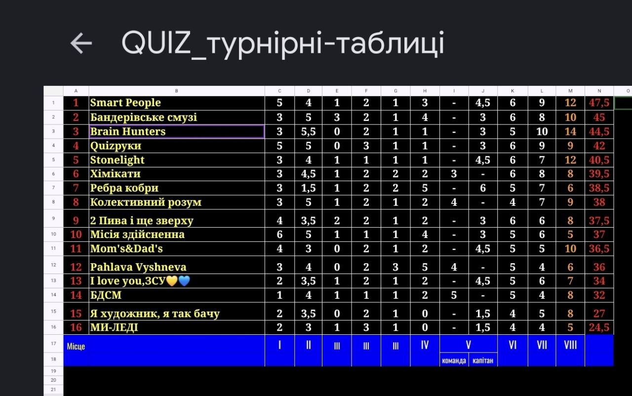 Після підрахунку балів команда Smart people отримала заслужену перемогу в Стоунлайт лізі Національного Quiz’у.