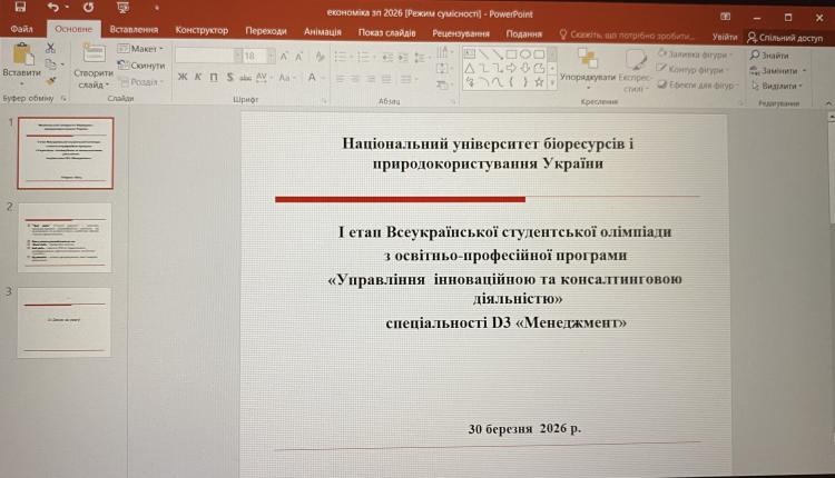 Проведено І етап Всеукраїнської студентської олімпіади в 2025-2026 н.р. у НУБіП України» для слухачів магістерської освітньо-професійної програми «Управління інноваційною та консалтинговою діяльністю» спеціальності D3 «Менеджмент», які отримали найвищі бали з профільних дисциплін прийняли участь в олімпіаді.
