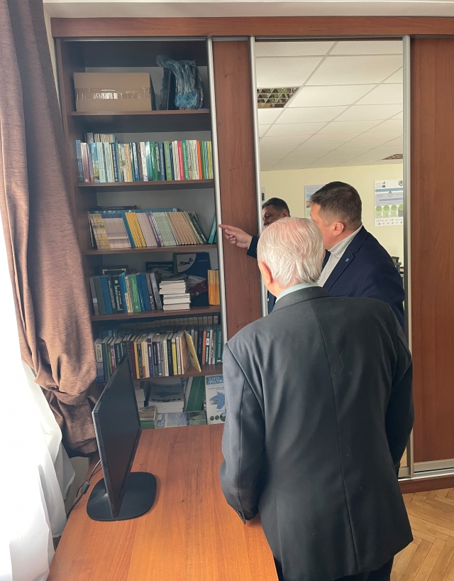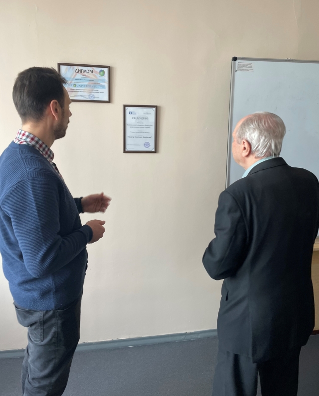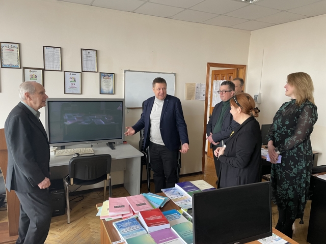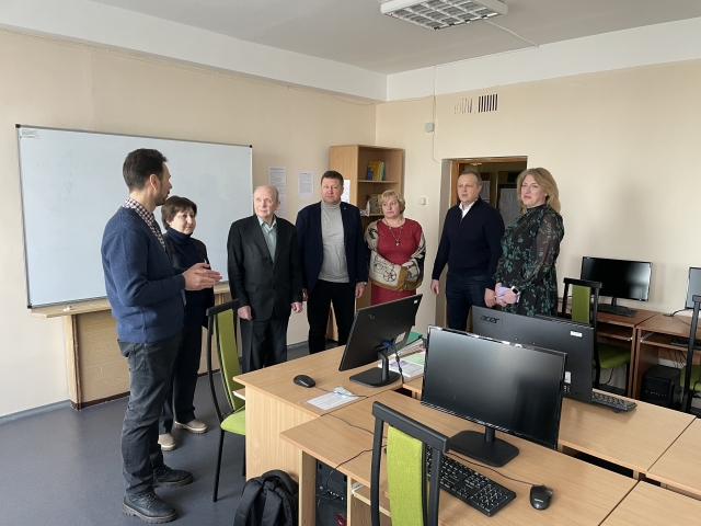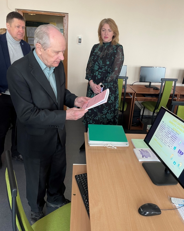 Свою роботу комісія розпочала з 6 поверху, а саме з навчально-наукової лабораторії «Інформаційні технології в бухгалтерському обліку», яка є структурним підрозділом кафедри обліку та оподаткування. В даній лабораторії використовується сучасна комп’ютерна техніка та програмне забезпечення, зокрема програмні продукти – BAS Бухгалтерія, BAS Комплексне управління підприємством, BAS ERP, MASTER: Бухгалтерія, M.E.Doc, BAS Документообіг КОРП та інші, що використовуються у навчальному процесі при підготовці фахівців зі спеціальності 071-Облік і оподаткування та інших економічних спеціальностей. Завідувач кафедри Любов Гуцаленко та доценти кафедри Володимир Литвиненко і Оксана Ганяйло відповіли на всі питання доцента Володимира Тракая. Комісія позитивно оцінила готовність кафедри обліку та оподаткування для проведення занять в очній формі.