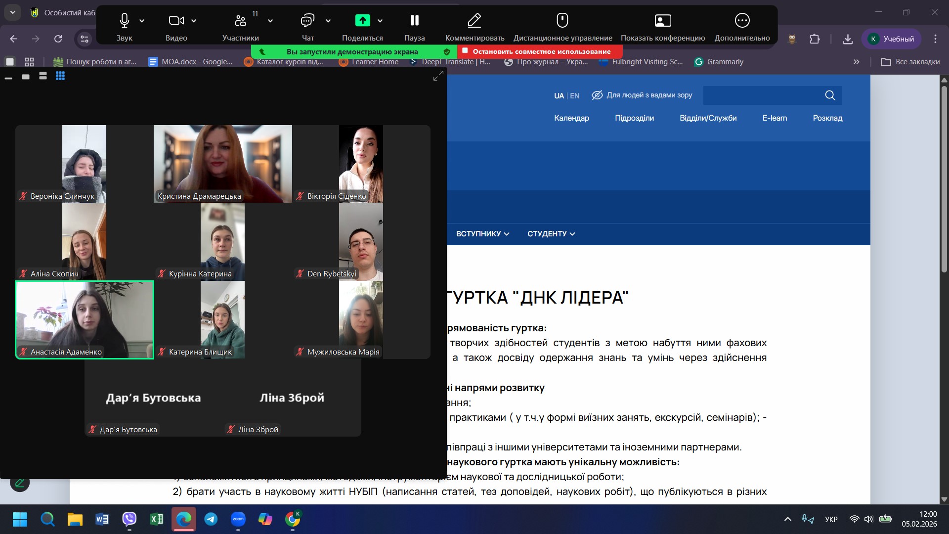 Перша зустріч членів студентського наукового гуртка «ДНК Лідера» в ІІ семестрі 2025/2026 н.р.