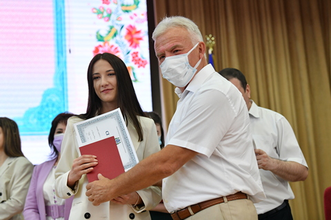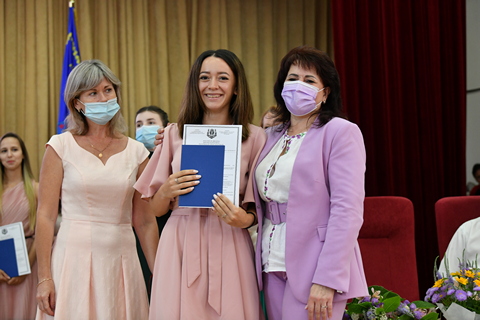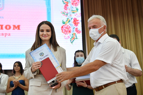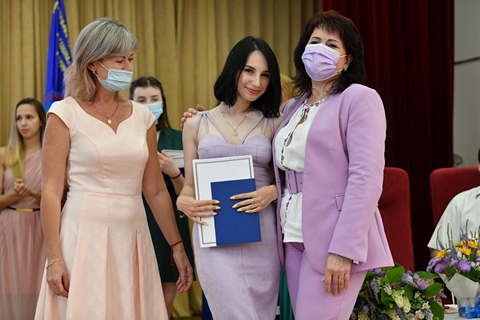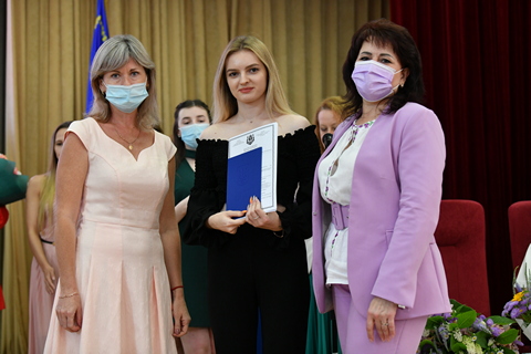 З рук ректора Станіслава Ніколаєнка та декана факультету Інни Савицької дипломи з відзнакою отримали студенти-відмінники. Далі до церемонії вручення довгоочікуваних документів державного зразка випускникам долучилися завідувачі випускових кафедр – Сергій Білан, Ірина Сопівник, Світлана Амеліна, Віталій Шмаргун та Руслан Сопівник.