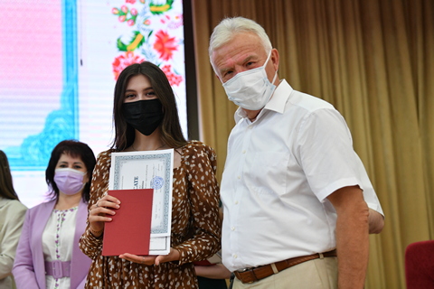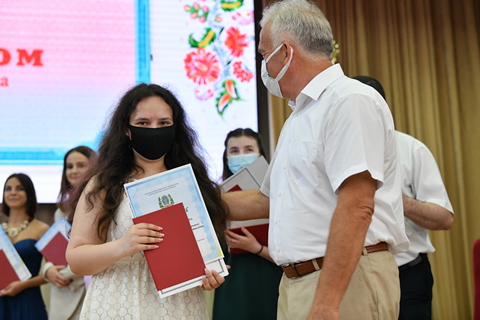 Урочисте вручення дипломів випускникам гуманітарно-педагогічного факультету відбулося 25 червня 2021 року у актовій залі, яка вперше за півтора роки побачила таку кількість студентів та гостей. Початок заходу, вже традиційно, розпочався з внесення прапору факультету та виконання факультетського гімну його автором - Заслуженим артистом України, доцентом кафедри культурології Романом Рудим та завідувачем кафедри культурології, професором Іриною Майданюк. Далі випускників та гостей свята вітала декан Інна Савицька. Для неї - це перший такий захід на посаді декана факультету, тому хвилювалися не лише випускники.