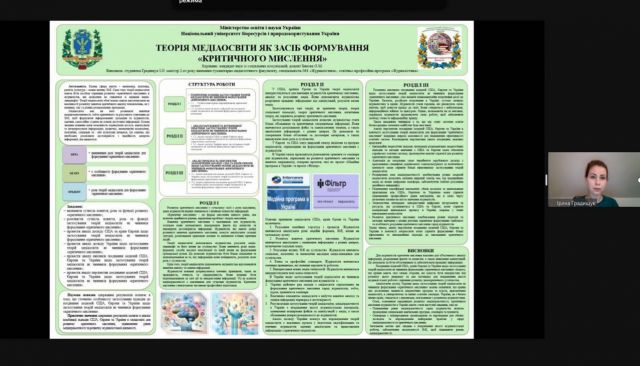 «Теорія медіаосвіти як засіб формування "критичного мислення"» (виконавець: Ірина Градищук, науковий керівник: доц. Ольга Бикова): робота зосереджувалася на значенні медіаосвіти в процесі розвитку критичного мислення.