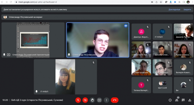 Студенти 2 курсу освітніх програм “Економічна кібернетика” та “Цифрова економіка” підготували та представили свої наукові доповіді, а далі ділилися своїм баченням щодо подальшого свого дослідження, обмінювалися думками, відповідали на питання один одного та звичайно питання від викладачів.