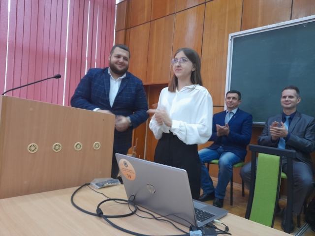 Представники студентської організації факультету Євгеній Бельдюгін і Анастасія Чернявська ознайомили першокурсників з барвистістю палітри дозвілля молоді університету, можливостями творчого вдосконалення, інтелектуального і фізичного розвитку особистості студента.