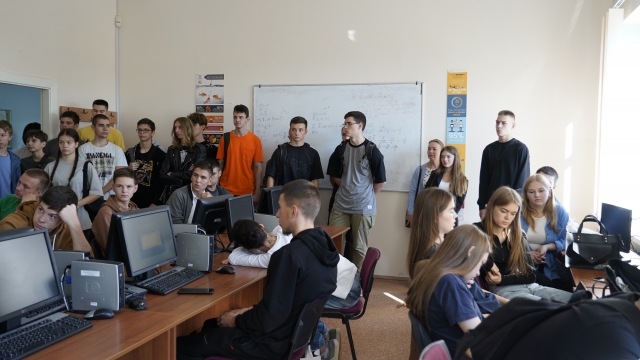 Надалі провели екскурсію навчальними лабораторіями - презентували сучасну матеріально-технічну базу кафедри та факультету. Слід відзначити, що цей день був навчальним для студентів, які вже вступили до лав факультету і виконували навчальні завдання в лабораторіях. Але це тільки сприяло зануренню гостей в реальний світ навчання в нашому "храмі науки" - факультеті Інформаційних технологій.