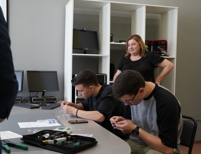 Представили і сучасну лабораторію "Технології штучного інтелекту", яка була створена, відкрита і презентовна цього року ректору університету. Завідувач кафедри комп'ютерних систем, мереж та кібербезпеки доцент Дмитро Касаткін розказав, як сучасний світ залежить від розвитку інформаційних технологій та розкрив особливості навчання на спеціальностях 123 "Комп'ютерна інженерія" та 125 "Кібербезпека і захист інформації".