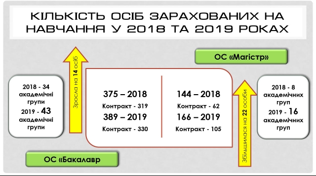 Питома вага зарахованих контрактників на 1 курс ОС «бакалавр» другий рік поспіль дуже висока. Це один із викликів усьому колективу нашого факультету, адже батьки оплачують навчання, тому й прагнуть отримати якісні освітні послуги. Спеціальності гуманітарно-педагогічного факультету мають попит між абітурієнтами. У десятку найпопулярніших спеціальностей університету минулого року входили три спеціальності нашого факультету ‒ це філологія, міжнародні відносини, психологія, а 2019 року ‒ журналістика і міжнародні відносини.