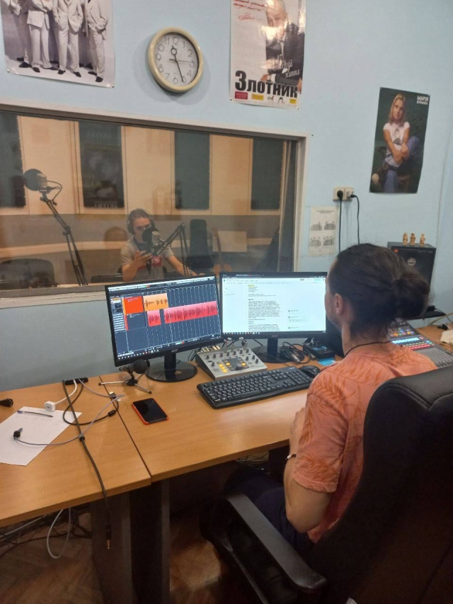 Предуже сподобалось у цьому завданні працювати саме в студії запису, де в сусідній кімнаті звукорежисер на ім’я Ростислав (щиро дякую йому також!) керував процесом і, де було потрібно, зупиняв, або чистив запис.