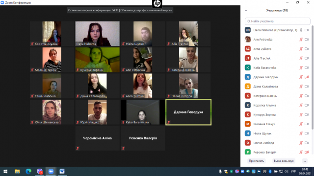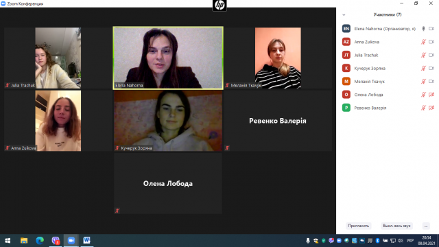 9 квітня відбулася он-лайн зустріч студентів 4 курсу 1 групи з наставником Нагорною Оленою Вікторівною. Зустріч було проведено за допомогою платформи Zoom.