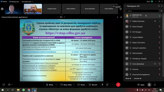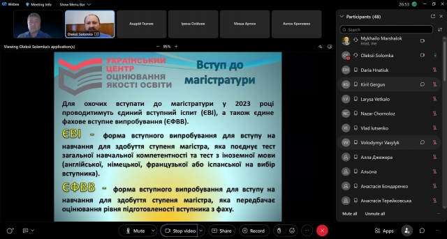 Деканат економічного факультету проводить послідовну роботу з ознайомленням студентів-випускників ОС «Бакалавр» з новими правилами прийому в магістратуру, які діють у 2023 р. Так 21.04 відбулася зустріч з студентами заочної форми навчання, які навчаються в міжкафедральних навчальних лабораторіях у регіональних навчальних закладах університету.