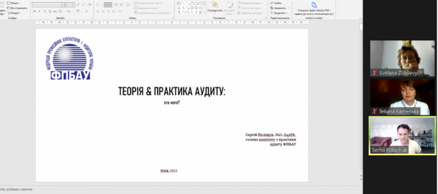 І навіть напередодні професійного свята «Дня бухгалтера та аудитора» бухгалтерська та аудиторська спільнота спрямовує зусилля для наближення перемоги, здійснюючи свою діяльність на економічному фронті. Так, у форматі марафону було проведено «IFRSForum Ukraine-2022 «На шляху до Перемоги та сталого розвитку», організовану Федерацією професійних бухгалтерів та аудиторів України (ФПБАУ). Серед учасників, які опікуються питаннями міжнародними стандартами фінансової звітності (МСФЗ), міжнародними стандартами аудиту (МСА), податковими питаннями, IT-ресурсами в бухгалтерській та аудиторській діяльності, підготовки фахівців з обліку і оподаткування в умовах воєнного часу – керівники, фінансові менеджери, головні бухгалтера, внутрішні та зовнішні аудитори, фахівці, а також представники закладів вищої освіти, серед яких і науково-педагогічні працівники кафедри обліку та оподаткування: завідувач кафедри, д.е.н., професор Любов Гуцаленко; д.е.н., професор Євгенія Калюга; к.е.н., доценти – Олена Боярова, Оксана Данілочкіна, Олена Колеснікова, Наталія Кузик, Володимир Литвиненко, Катерина Шевчук.