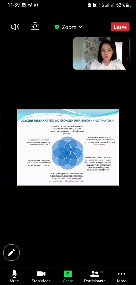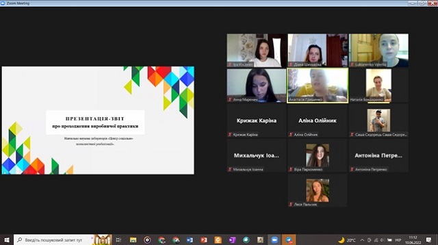 10 червня 2022 року студенти 4 курсу спеціальності «Соціальна робота» звітували про колосальну пророблену ними роботу в ході виробничої практики. Кожному студенту були поставлені індивідуальні завдання з урахуванням теперішніх умов.