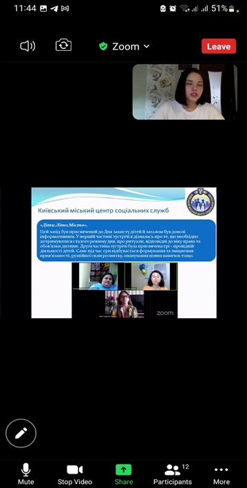 Також хочемо подякувати Київському міському центру соціальних служб, що розташований за адресою вул. Довженко, 2, м. Київ за надану можливість долучити наших студентів до онлайн-зустрічі, в ході якої слухачі мали змогу ознайомитися з методами ігрової діяльності та роботою самого центру.