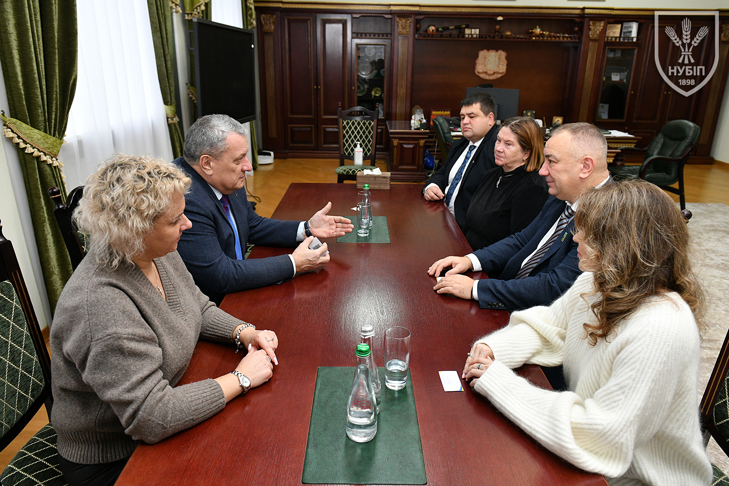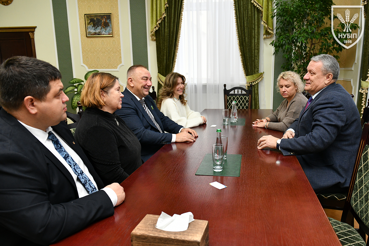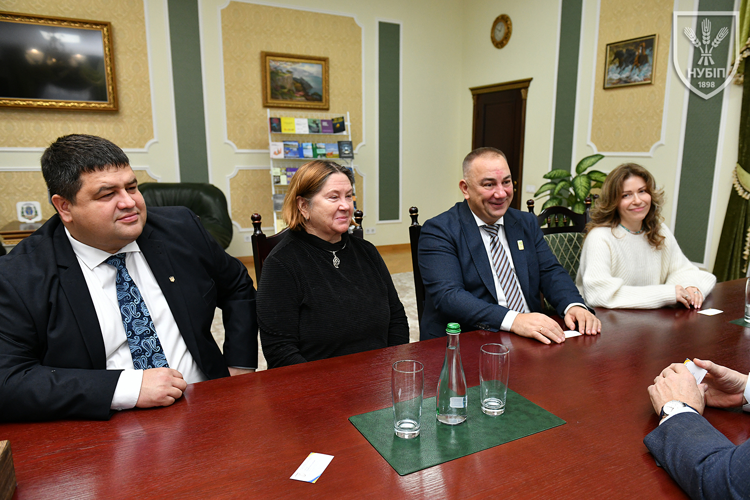 Перед підписанням Меморандуму відбулася змістовна професійна зустріч, під час якої сторони обговорили ключові напрями майбутньої співпраці та окреслили спільні цілі. У розмові взяли участь: директор Групи компаній Life Biochem Богдан Віталійович РОПОТІЛОВ, ректор НУБіП Вадим Анатолійович ТКАЧУК, завідувачка кафедри рослинництва НУБіП Світлана Михайлівна КАЛЕНСЬКА, проректор з науково-педагогічної роботи та економічних питань НУБіП Тетяна Олексіївна КОСТЮК, викладач кафедри рослинництва НУБіП Богдан Іванович АВРАМЧУК, директор департаменту маркетингу Life Biochem Наталія Олександрівна ДИШЛЮК.