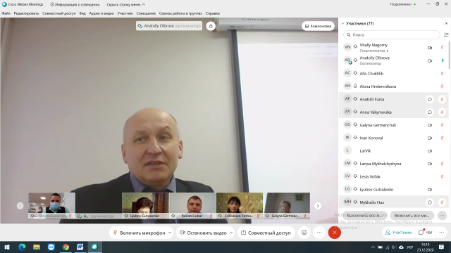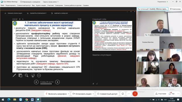 Декан відзначив активну міжнародну діяльність факультету. Незважаючи на пандемію світового масштабу в 2020 р. викликану COVID-19 та запровадження карантинних заходів НПП економічного факультету активно брали участь в міжнародних заходах в дистанційному режимі. Зокрема, 40 НПП економічного факультету пройшли міжнародне стажування, 54 НПП брали участь в міжнародних конференціях за кордоном та 103 НПП в міжнародних конференціях в Україні в дистанційному режимі.