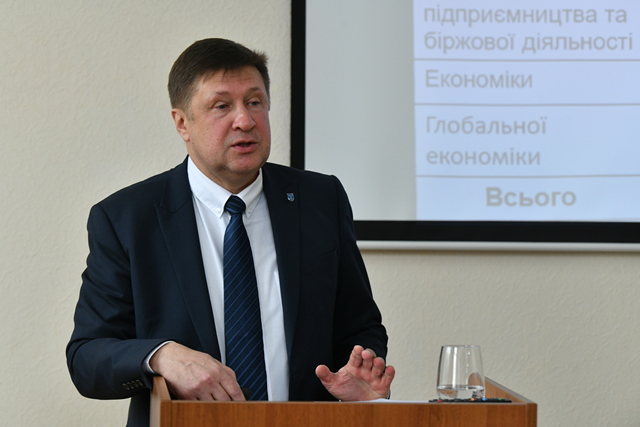 Декан економічного факультету зауважив, що на сьогодні до складу економічного факультету входять 7 кафедр, які забезпечують підготовку фахівців ОС «Бакалавр» та ОС «Магістр» за 4 спеціальностями.