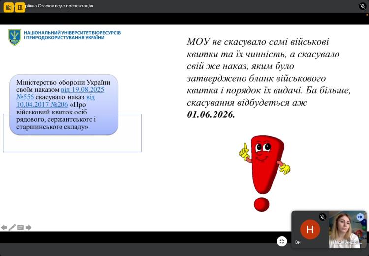 Проведена відкрита лекція сприяла формуванню цілісного розуміння правових механізмів мобілізації та військового обліку, підвищенню рівня правової культури здобувачів і розвитку їх здатності застосовувати отримані знання у професійній діяльності.