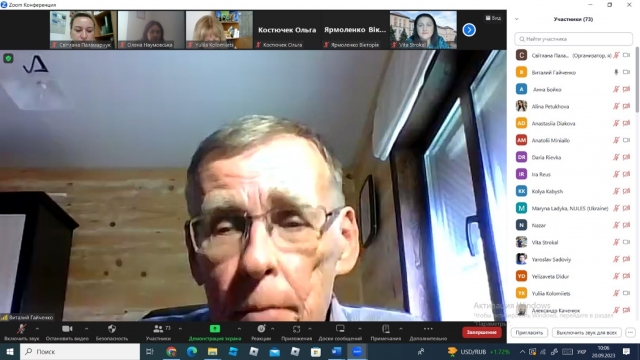 Професор кафедри екології агросфери та екологічного контролю, д.б.н. Віталій Гайченко, представив наукову доповідь на тему «Зміни біологічного різноманіття в екстремальних умовах» який відмітив, що сьогодні Україна хотіла б разом з цивілізованим світом обговорювати додаткові шляхи захисту деяких видів флори та фауни, але цифри війни, змушують думати і діяти про те, як зберегти наше біорізноманіття. Війна є масштабною загрозою для 35% біорізноманіття Європи, яке знаходиться в Україні. Наразі через широкомасштабне вторгнення рф в Україну під загрозою знищення перебуває близько 600 видів тварин та 750 видів рослин. Це зокрема, понад 120 водно-болотних видів птахів, які оберігаються згідно з Угодою про збереження афро-євразійських водно-болотних птахів.