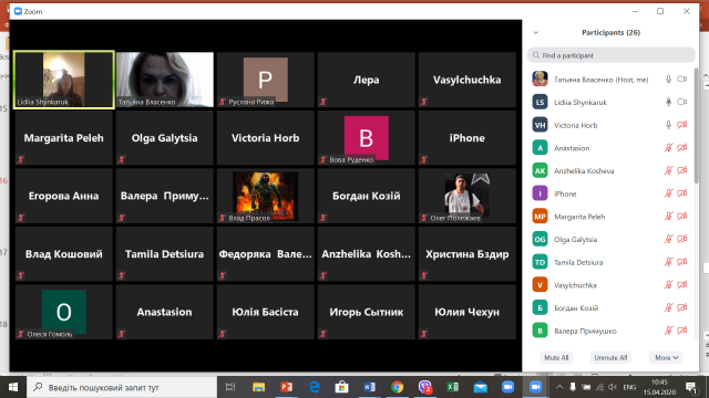 В процесі навчання студенти були активні та готові до спілкування. Поділимось думкою Тетяни Васильчук, яка вважає, що будь-яке спілкування в сучасних умовах приносить неабияку насолоду, особливо коли це спілкування приносить ще й користь. Під час online конференцій їй сподобалось те, що за короткий час студенти встигають зробити все, що заплановано, бо викладачі професійно наголошували на головні аспекти, які без їх допомоги студентові важко засвоїти. Тому в ході такої співпраці не існувало поглиначів часу. Також Тетяна зазначила, що незважаючи на те, що студенти знаходяться в різних куточках країни, наш зв’язок з викладачами зміцнився і контакт навіть кращий, ніж в аудиторіях. На її думку це через те, що ми всі розуміємо ситуацію, в якій знаходимось, адже під час карантину у всіх відбулась переоцінка потреб і можливостей.