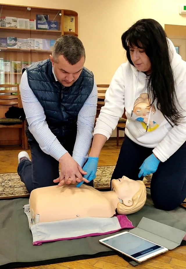 Під час навчання було проведено багато практичних робіт із використання автоматичного дефібрилятора, відпрацьовано методику проведення серцево-судинної реанімації, накладання джгутів і турнікетів в залежності від характеру травми, а також освоєно принципи комплектації аптечок для надання домедичної допомоги.