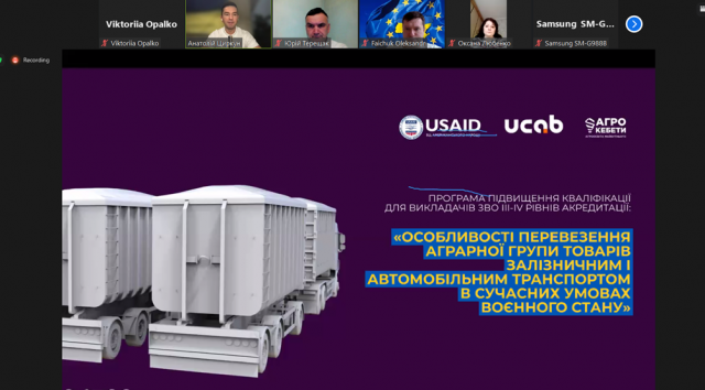 Також ми прийняли участь в програмі підвищення кваліфікації викладачів закладів вищої освіти ІІІ-IV рівнів акредитації України «Особливості перевезення аграрної групи товарів залізничним і автомобільним транспортом в сучасних умовах воєнного стану». Навчання проводилися в рамках проєкту «Розвиток трудового потенціалу для України», який реалізується за сприяння проєкту Агентства США з міжнародного розвитку (USAID) «Економічна підтримка України».