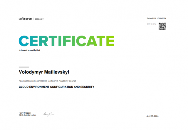 Сертифікати, видані слухачам від SoftServe Academy, стали підтвердженням їхнього успішного завершення курсу (120 годин, 4 кредити).