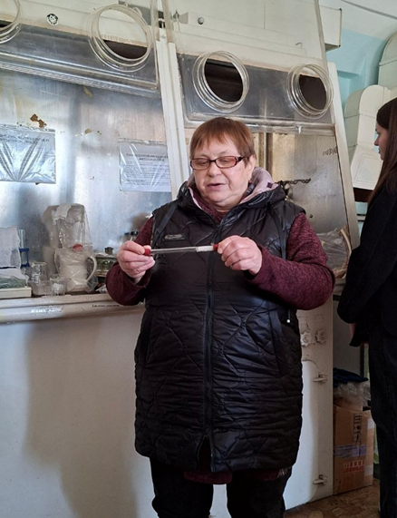 Детальніше про особливості діяльності Лабораторії радіаційного контролю повітря екскурсантів ознайомила начальник лабораторії Світлана Леонідівна ПАРНЄВА. Вона розповіла про методику відбору й аналізу радіоактивності проб атмосферного повітря, ознайомила із сучасним лабораторним обладнанням та процесом вимірювання й обробки результатів досліджень.