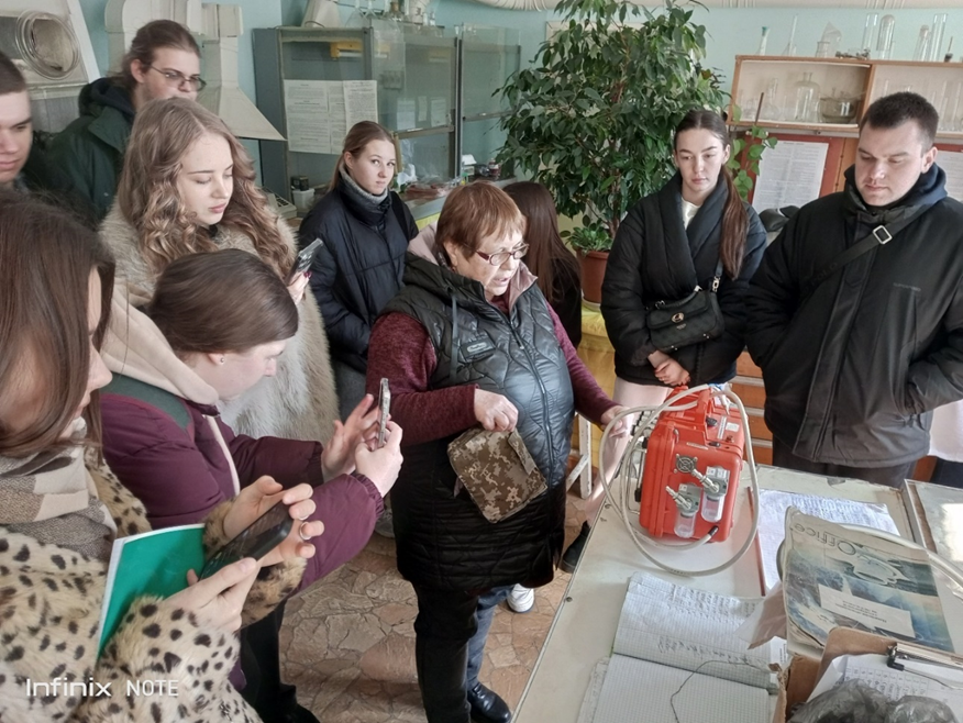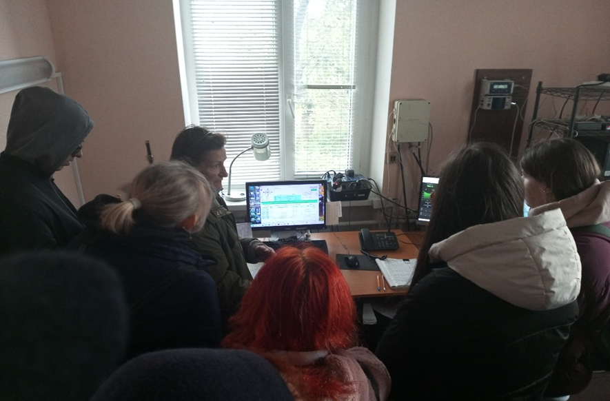 Досить цікавою і пізнавальною була інформація із Відділу радіаційно-екологічного контролю, у якому йде збирання, аналіз, оцінювання якості, систематизація та узагальнення даних з радіоактивного забруднення об’єктів довкілля. Співробітники відділу здійснюють загальнодержавний фоновий моніторинг стану приземної атмосфери та поверхневих вод на території України, а також незалежний моніторинг стану навколишнього природного середовища навколо діючих атомних електростанцій; проводять аналітичні роботи із визначення вмісту радіонуклідів у відібраних пробах із мережі спостережень гідрометеорологічної служби, формують банки даних щодо забруднення радіонуклідами атмосферного повітря, ґрунту і поверхневих вод.