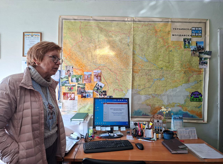 Далі було відвідано Лабораторію спостережень за забрудненням поверхневих вод, де гідрохімік І категорії Ірина Вікторівна ГАПОНЕНКО показала презентацію із актуальними дослідженнями лабораторії, із якої ми мали змогу ознайомитися із відеоматеріалами та світлинами цьогорічних експедиційних виїздів по басейнах великих річок України. Слід сказати, що співробітники відділу проводять свої дослідження із якості поверхневих вод, визначаючи затверджені показники відповідно до прийнятої Європейської Рамкової водної Директиви.