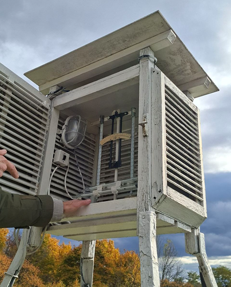 Так, ми побачили опадоміри за допомогою яких визначають показники рідких (дощ) і твердих (сніг) опадів, снігоміри для визначення щільності і висоти снігового покриву, льодоміри та мерзлотомір Даниліна - прилад для визначення глибини промерзання ґрунту. Цікаво було бачити серію термометрів з визначення температури ґрунту, як на поверхні, так і тих, що вимірюють температуру на різних глибинах, а потім в автоматичному режимі передають дані на центральний комп’ютер. Молодь ознайомилася також із приладами по визначенню вологості і тиску атмосферного повітря, швидкості і напрямку вітрів, проведення спостережень із використанням радіозондів, тощо.