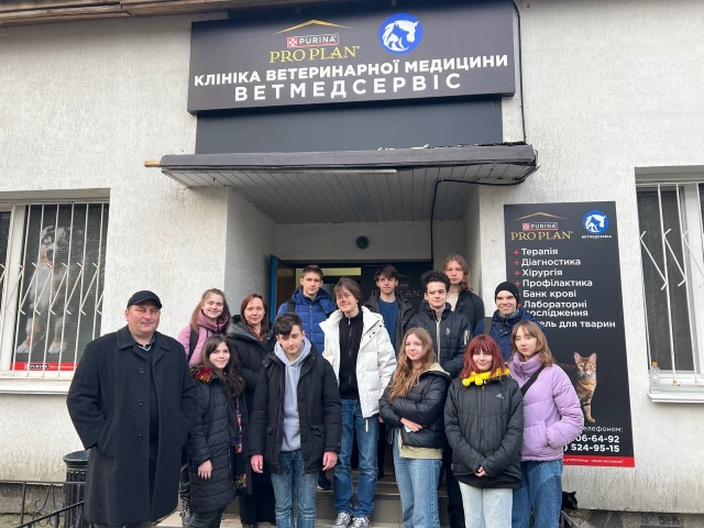Екскурсія продовжувалася, адже кандидат ветеринарних наук, доцент Соломон В’ячеслав Віталійович радо запросив учнів у навчально-науково-виробничий центр «Ветмедсервіс». Там він розповів про роботу клініки дрібних тварин та познайомив дітей з центром «Наука 3.0», в якому учні мали змогу побачити під мікроскопом одноклітинні організми, тканини рослин і тварин.