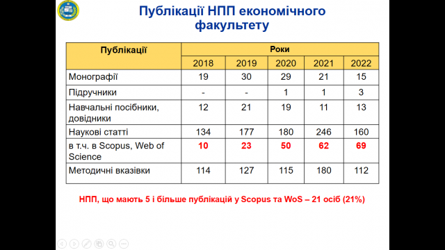 Педагогічними працівниками економічного факультету опубліковано 69 статей в міжнародних базах Scopus та Web of Science.