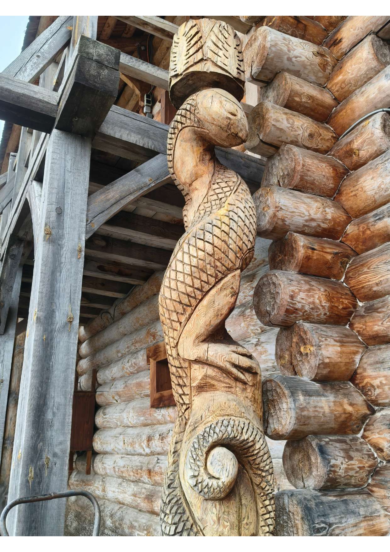 Враження розпочалися вже з моменту наближення до головного входу. Величні оборонні вали, що здіймаються над ландшафтом, створюють відчуття надійного захисту і відокремлюють простір Парку від сучасної реальності. А проходячи через відтворені Михайлівські ворота – копію головного в’їзду до Києва часів Володимира Великого, які тоді ще називалися «Великі», – ми буквально переступили поріг між двома епохами. Ці ворота вражають своєю монументальністю: високі дерев’яні конструкції, увінчані дозорними вежами, справді переносять уяву до часів, коли кожен вхід до міста був укріплений форпост. Я уявляла, як тисячу років тому тут могли проїжджати князівські дружини, купці з далеких земель, як тут вирувало життя.